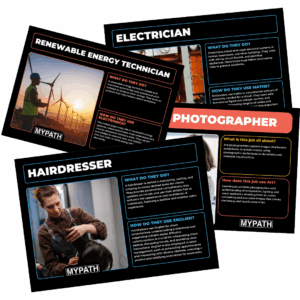 We provide a minimum of 30 career-focused posters for every GCSE subject, each packed with clear and accessible information about different job roles. Every poster explains what the job involves and, most importantly, how it connects directly to the knowledge and skills developed in that subject.